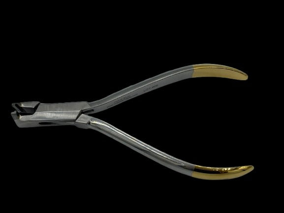 A precision-engineered distal end cutter designed to cut and securely hold orthodontic wire ends during clinical procedures. Compact short-handle design ensures maximum control and comfort.