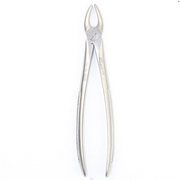 The Fig. 17 Forceps for Upper Molars (Right) (Cod. 1000-13) by ๐๐ฒ๐ป๐๐ฎ๐น ๐๐ ๐ฝ๐ฒ๐ฟ๐ is a precision-engineered extraction instrument specially designed for the removal of upper right molars. Its anatomically contoured beaks are shaped to conform perfectly to the root anatomy of maxillary molars, ensuring secure grip, superior control, and minimal trauma during dental extraction procedures.